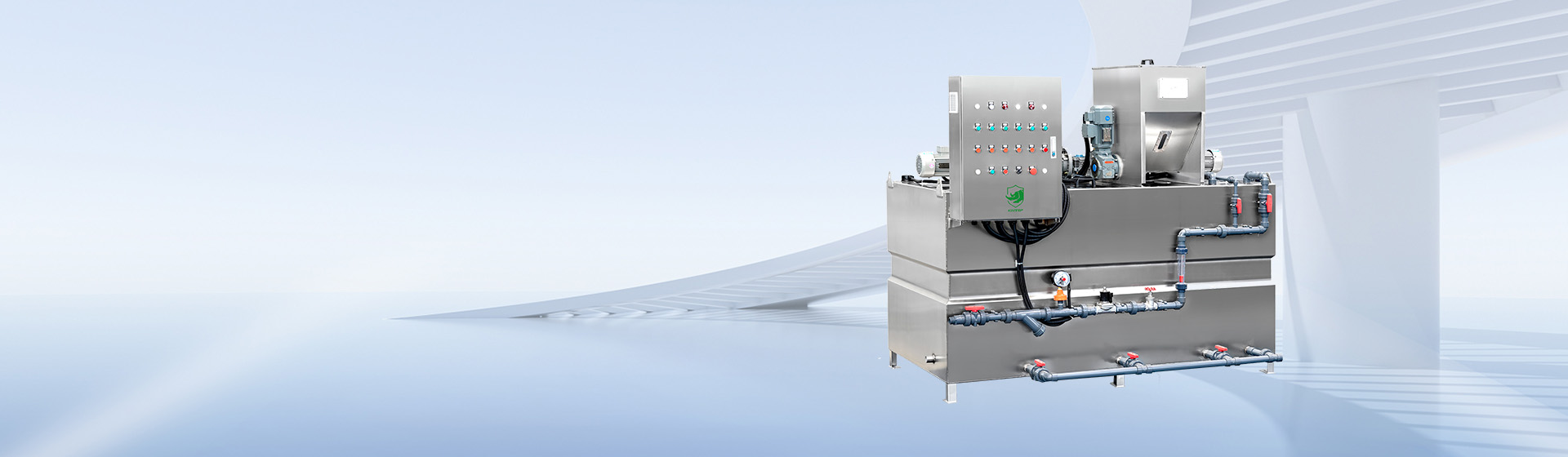 該裝置主要用于聚丙烯酰胺(PAM)粉狀劑配制與投加。給水等其它水處理系統(tǒng)干粉的配制與投加,也可參照選用